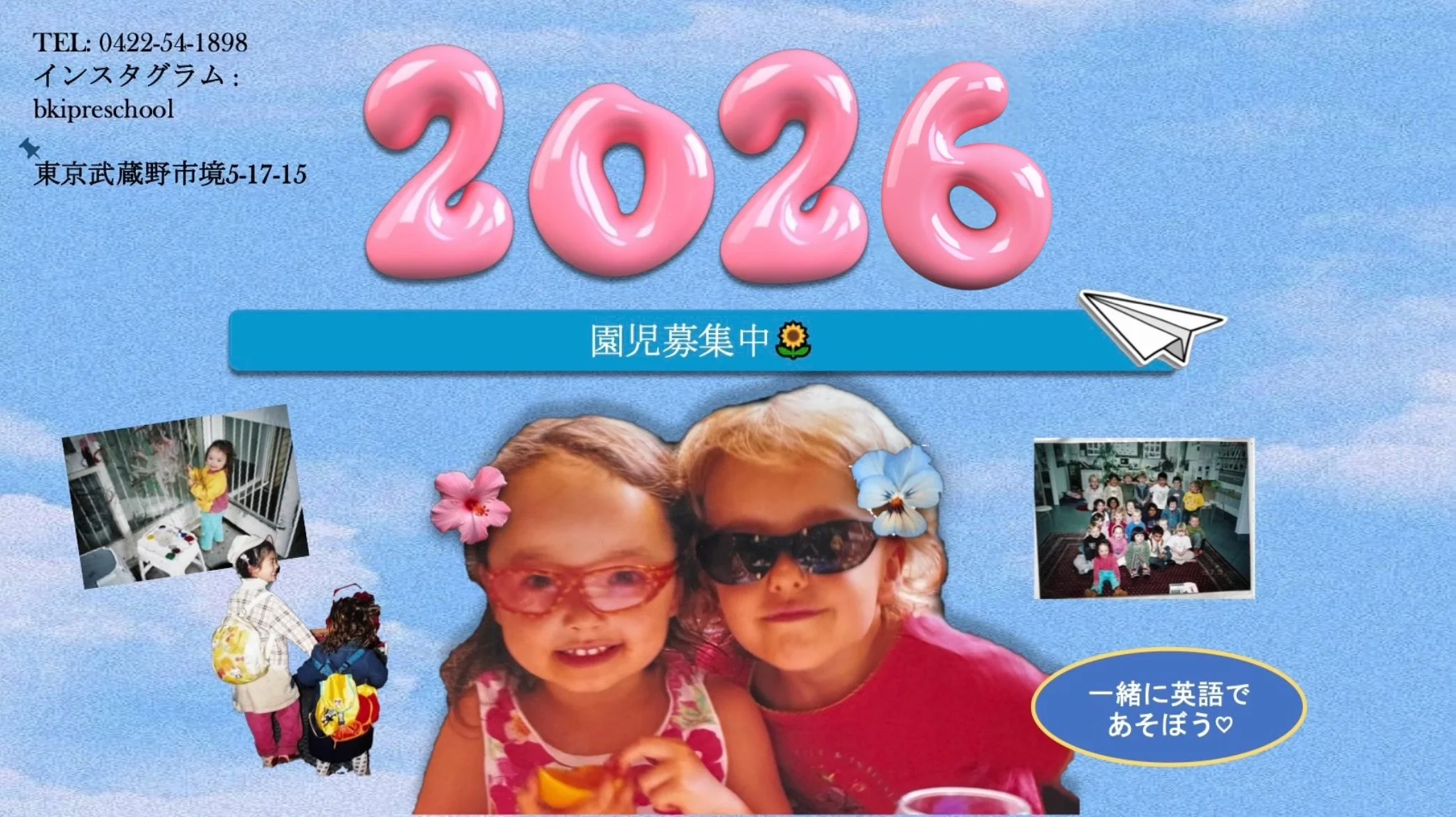 BKIプリスクールは武蔵野市周辺で一日保育、三日・四日保育、デイケアをお探しの方にピッタシな学校です。アジア大学からおよそ徒歩3分、2004年から起業して以来たくさんのご家族から多くの励ましと心温まるお言葉をいただいております。BKIは武蔵野市で英語教育を提供する唯一のデイケア(一日保育、三日・四日保育)で、すべてのプログラムは英語で行われております。(相談に限り特別日本語授業も提供しております)吸収の早い幼児期から英語を学ぶことはこの先の中学、高校、大学で役立つのにはもちろん、興味を持って学ぶ、意欲的に学ぶ、学習を楽しむ手助けもしてくれます。